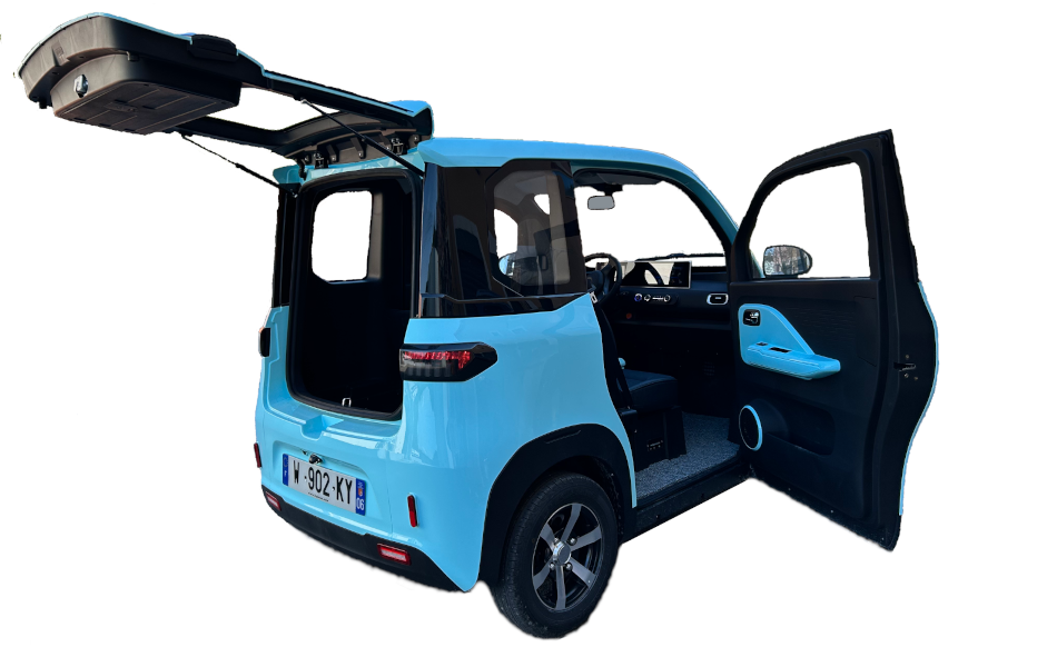 Voitures sans permis CITY FUN 2+2 A partir de 10 990 € TTC Jusqu'à 200 km, climatisation, banquette arrière 2 places rabattable, toutes options de série